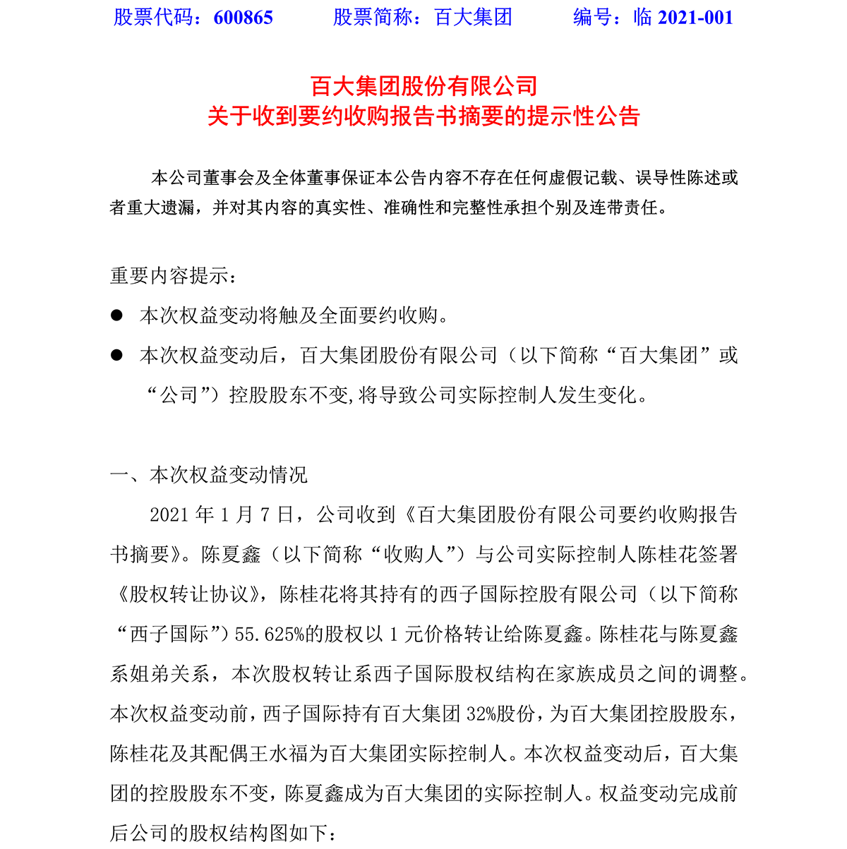 2021-001关于收到要约收购报告书摘要的提示性公告